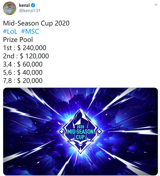 刚刚韩媒记者Kenzi透露了季中杯的奖金池