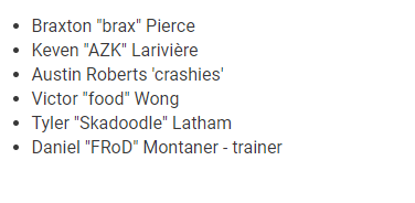在这之后,Skadoodle就开启了直播生涯,直播的游戏内容也主要以FPS为主,直到近日宣布他将以选手的身份加入北美队伍T1。 T1的阵容中有不少老面孔,其中brax, Food等都是前CSGO的职业选手,教练fRoD更是1.6时期的名将,目前T1的阵容如下: