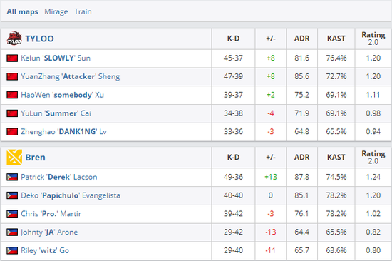 在自己选择的Mirage上,TYLOO的进攻其实并没拿出什么战术,更多还是依靠个人能力破点打出优势后集体推进,但这样也给了Bren较多的机会。可换边后菲律宾人更加拉跨,执行力较弱、单兵作战及混乱的残局处理都让其难以留住优势,很快就以大比分输掉了第一张地图。