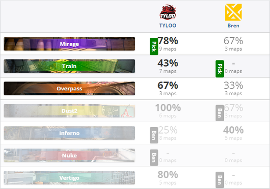 TYLOO 2-0 Bren(Mirage 16-9;Train 16-14;Overpass)