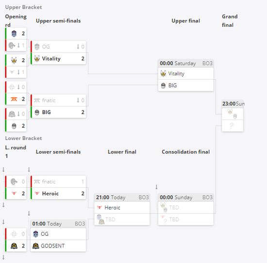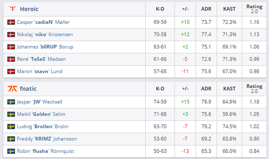 Heroic 2-1 Fnatic(Train 16-13;Nuke 17-19;Inferno 16-13)