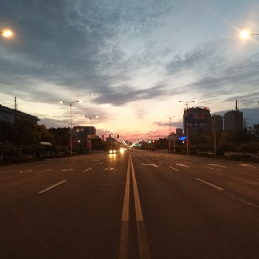 一道夕阳如火的晚霞,一条笔直宽阔的马路。一个瘦弱的身影。
