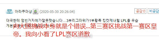 “向大国挑战本身就是个错误,我为了小看LPL道歉。”