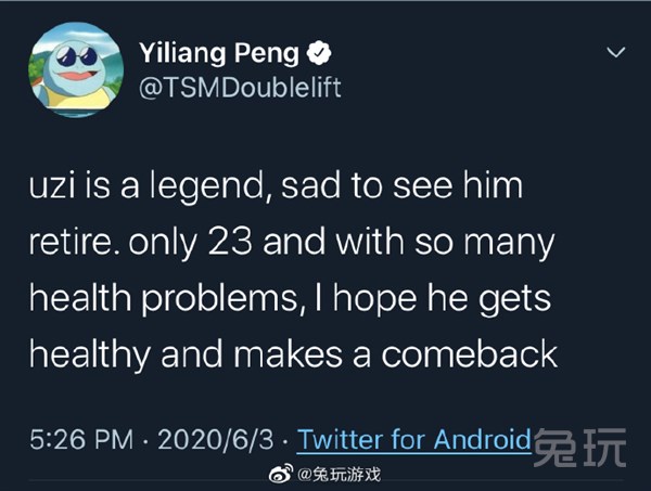 大师兄:Uzi是一个传奇,看到他退役真的太难过了。