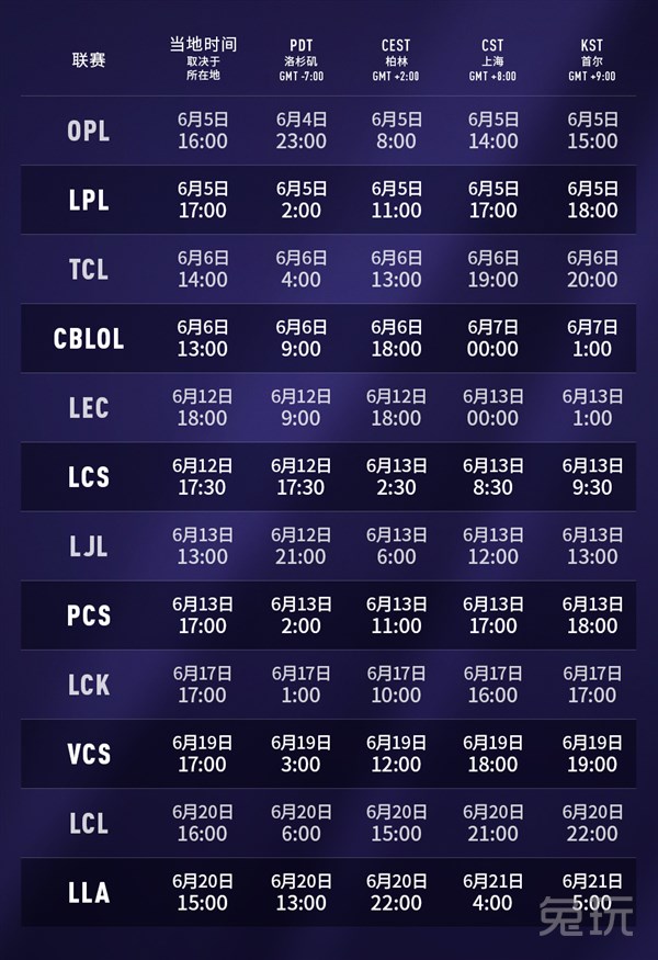 从6月5日的LPL赛区开始,所有12个英雄联盟赛区都将会在该月举行他们的下一赛季。让我们来快速浏览下第二赛季里头几场的对阵双方,这些比赛可以通过前往各大赛区英雄联盟赛事官网在世界各地进行观看。