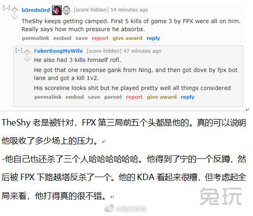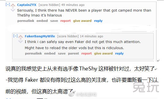 “说真的我感觉史上从未有选手像TheShy这样被针对过,太好笑了”