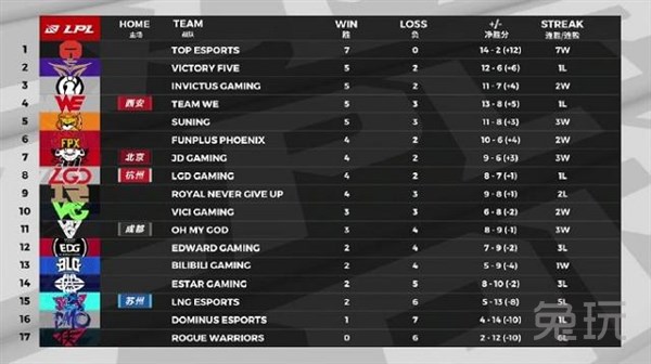 夏季赛进入到第五周的赛程,各战队也是对每一场比赛都紧张起来了,输一场比赛和赢一场比赛带来的后果是差距很大的,目前积分榜上前十的队伍都追的非常紧,除了TES是以遥遥领先的姿态居于榜首之外,第二名开始的队伍都没有办法保证稳住在比较靠前的位置,所以后面的队伍竞争是相当激烈的,各队伍的排名也是变化比较快。