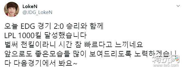 在昨天(7月6日)JDG与EDG的比赛结束之后,LokeN在推特上发布了自己对于LPL第1000杀的纪念感想: