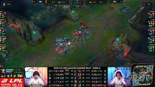 比赛刚开始的时候,SN其实还是打出一定优势的,开局就已经是5-0的比分,而且上单和打野都是处于领先位置。只不过ES这边的发挥也不差,下路的补刀领先了不少,在防御塔等资源方面也没有落后,所以经济差距不算太大。