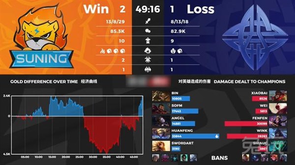 值得一提的是,这场比赛还评出了“最奇葩”的MVP,那就是huanfeng的EZ,在对位经济差上落后了五千以上。其实在这场比赛中,wink的厄斐琉斯从对线到团战,作用都确实比EZ更大,只可惜最后输掉了比赛。而EZ之所以能够拿到这次比赛的MVP,也只能说其他人的发挥也是有点惨不忍睹赌,EZ的KDA、伤害占比等数据至少比较好看。