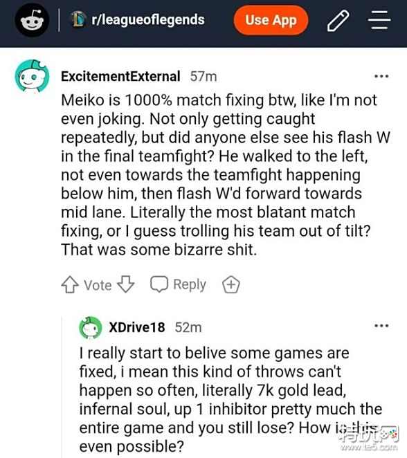 -我不是开玩笑的,meiko1000%打假赛了。不仅仅是一直被抓死,而且有人注意到他的闪现W了吗?他向左放的,甚至都没有朝向下方的团战,然后他向前闪现往中路走。这就是很明显的假赛,或者他故意想让EDG输吗?这真的很奇怪。