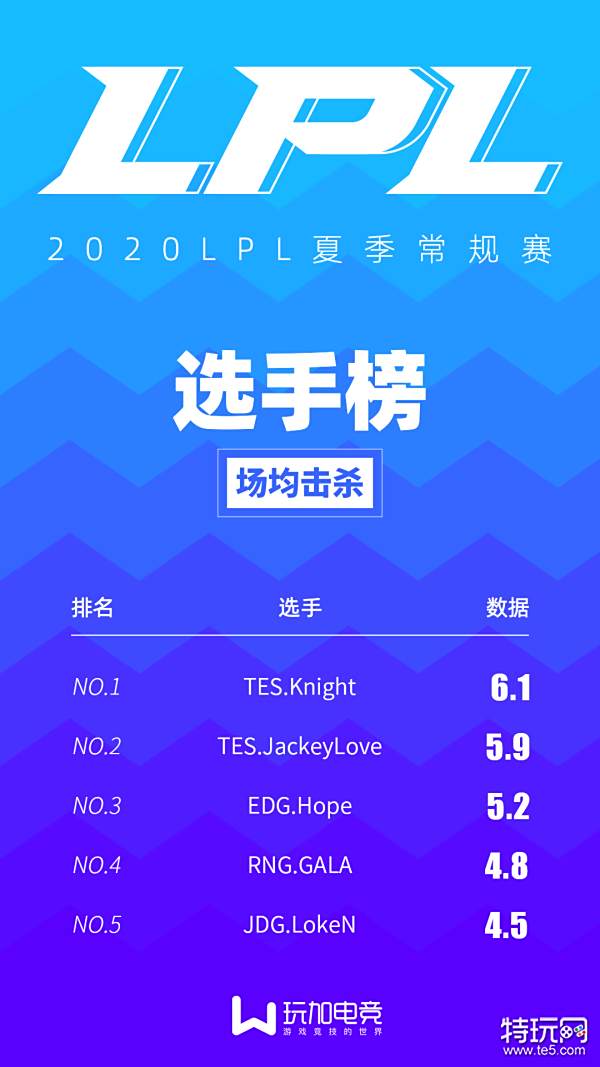 场均击杀方面GALA登上榜单!其他选手变化不大~TES双C依然坐稳前二!