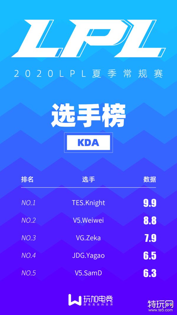 Knight再次登顶KDA榜首!Yagao在上周比赛过后也出现在KDA榜中~