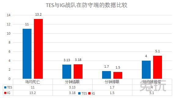 从上述图表中可以看到,在防守端4项数据的比较中,TES有3项数据优于IG,仅在分钟插眼上落后于IG。