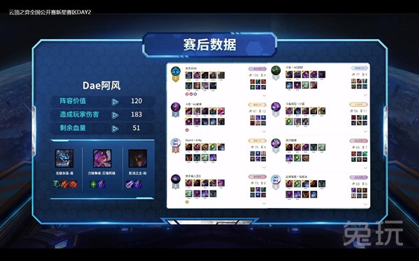 第一局的决赛在Dae阿风和星晴之间展开,尽管来自“卡司电竞”的星晴选手有三星提莫坐镇后排爆炸输出,可惜面对已经大成的高质量六剑六奥还是略显乏力,无力回天。最终D组第一鸡由Dae阿风拿下!