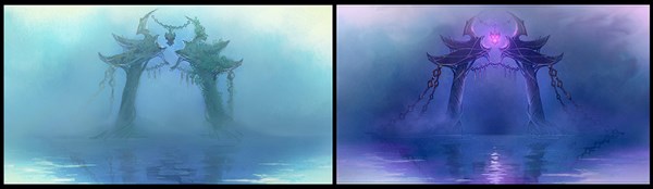 “我们使用了主题开发团队在灵魂莲华系列皮肤创作过程中留下的素材,作为《道》的画风参考。” Riot Manton继续解释说,“我们很想带玩家前往一个从未在英雄联盟中见过的地方。整体感觉应该像是故事书里的插画活了过来。图像应该给人感觉像是一种模糊的回忆,感觉触手可及却又莫可名状,只存在于你的想象,不完全真实。”