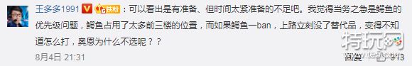 可以看出是有准备、但时间太紧准备的不足吧。我觉得当务之急是鳄鱼的优先级问题,鳄鱼占用了太多前三楼的位置,而如果鳄鱼一ban,上路立刻没了替代品,变得不知道怎么打,奥恩为什么不选呢??