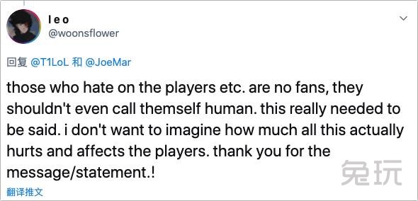 那些讨厌选手的根本不是粉丝,他们甚至不应该称自己为人。这确实需要说,我敢去想象这一切会对选手造成多大的伤害和影响,谢谢你们的声明。