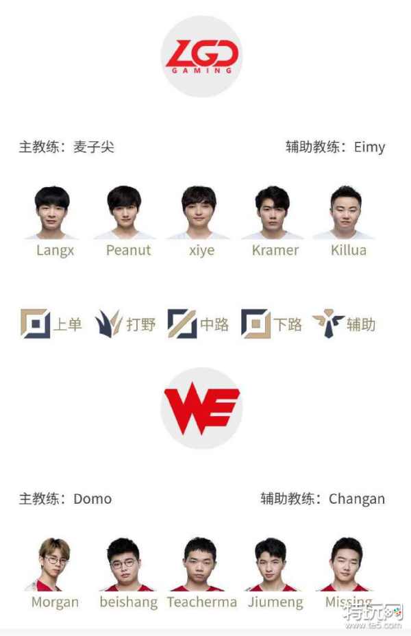 双方BO5第四局比赛开始,LGD蓝色方,WE红色方,LGD做出换人调整辅助MARK替补上场。