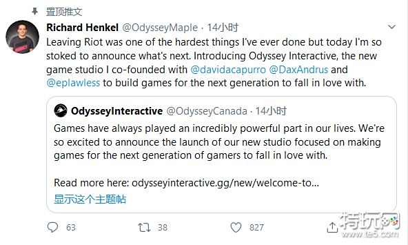 离开拳头是我做过最艰难的决定,今天我有点激动,我将宣布接下来要做什么,这是我与合作伙伴共同创建的新工作室Odyssey,为玩家创造能让他们爱上的游戏。