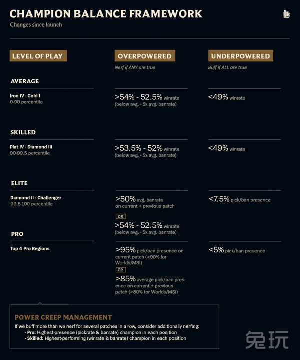 “英雄平衡框架”负责指导职业赛场的平衡策略,季中赛和世界赛等大型赛事所使用的版本除外。