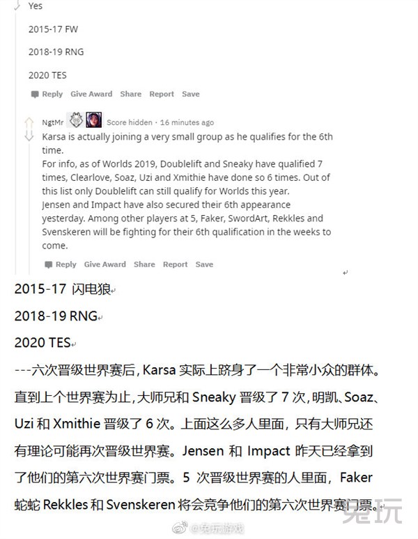 六次晋级世界赛后,Karsa实际上跻身了一个非常小众的群体。