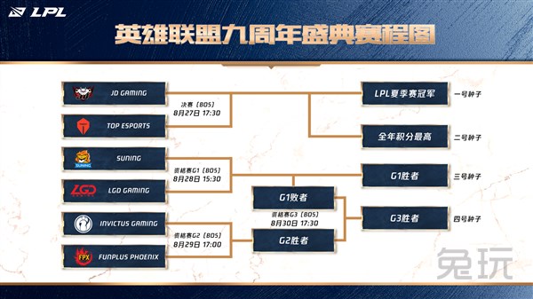 英雄联盟9周年盛典将于8月27日至8月30日举行。2020LPL夏季赛总决赛将在8月27日17:30进行,JDG与TES将围绕冠军归属展开交锋——前者力求成功卫冕,后者则志在联赛首冠。与此同时,包括2020全球总决赛资格赛、周年盛典明星表演赛、神秘游戏内容发布、史诗级福利放送等诸多精彩内容都将在四天盛典期间内一一呈现。