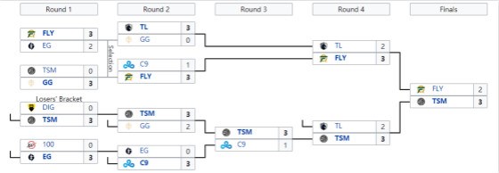 2020LCS夏季赛季后赛于8月13日开始,采取了比较少见的双败淘汰赛制。TSM首轮就遭到GG战队3:0横扫跌入了败者组,再一次踏上了淘汰的边缘。由于今年LCS联赛的整体改制,季后赛的前三名将直接获得全球总决赛资格。TSM若想进入S10,就必须赢下至少三个BO5。