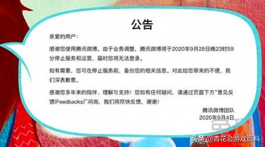 其次是在2020年9月4号的时候,腾讯官方宣布“腾讯微博”将在2020年9月28号正式停止运营。