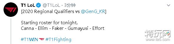 T1官宣今日首发 Faker与Gumayusi继续出战