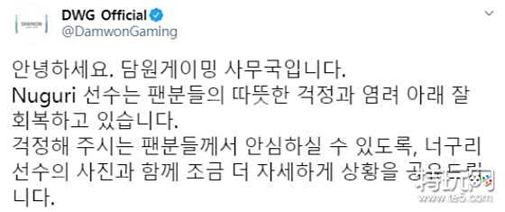 DWG在推特上发布公告,与粉丝们分享了Nuguri的现况: