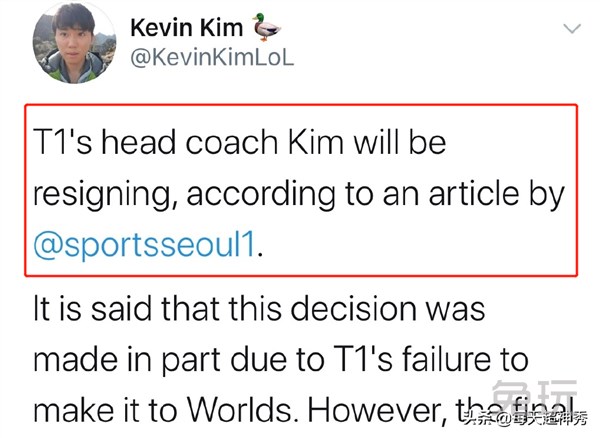 金晶洙的好日子到头了?扣马Kkoma告别VG后,Faker等来了好消息,据LCK韩媒爆料,由于T1战队输掉了资格赛,未能晋级S10英雄联盟全球总决赛,队内总教练金晶洙有可能会辞职,但是目前,金晶洙与T1合同终止的过程还未走完。