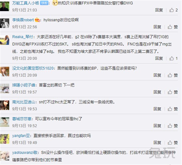 LPL观众则表示,sn的训练赛并不能算数,现在sofm未尽全力,因为训练赛没有被人看到,他也没法“动作”。或者,sn战队只是在藏拙,战队还是一支新队伍,他们的很多特点没有在比赛中展现出来,自然也不会在训练赛中真的尽力,以免被fnc这种世界赛老牌战队给研究透彻了。