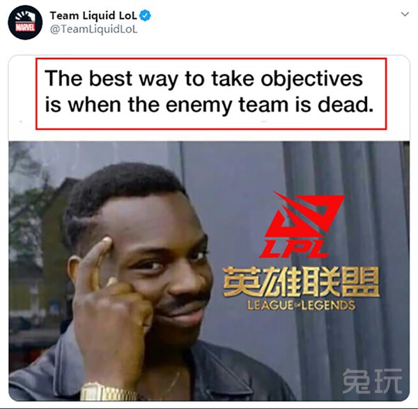 TL官推发文称:获取资源的最好方式,就是先把对面杀光!随后,LPL官推在评论区回复:现在你终于明白了!