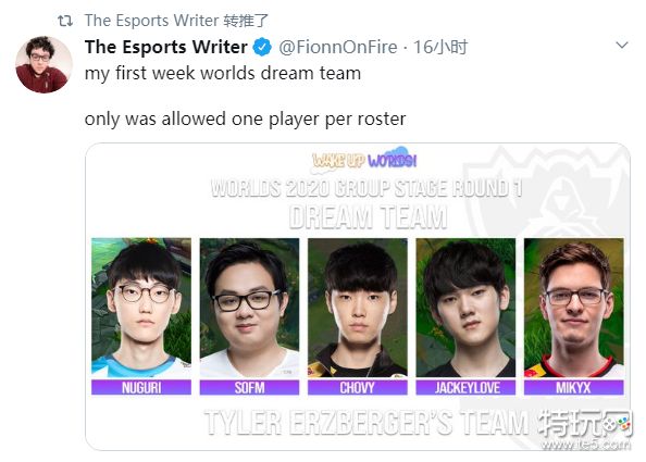 今日ESPN记者Fionn更推分享了自己心目中的世界赛第一周梦幻阵容