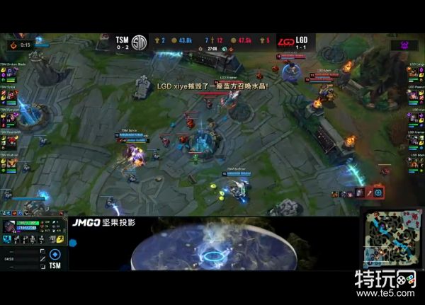 [27:00] LGD中路找机会击杀了没有闪现的EZ,随后推掉了TSM中路水晶,拿下第二条火龙。