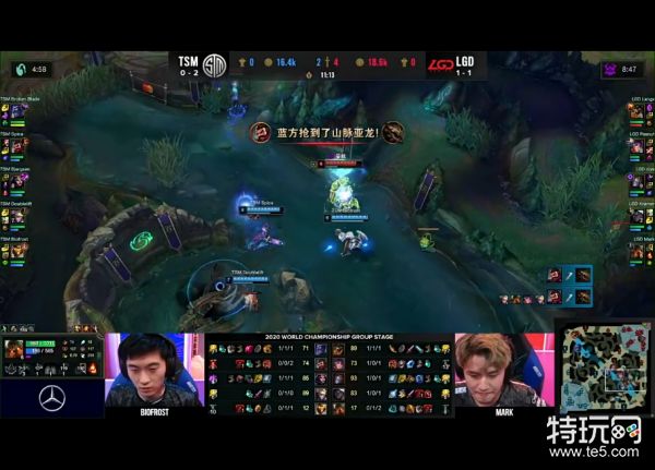 [33:20] LGD直接开打火龙,男枪惩戒抢下小龙,但随后的团战中LGD伤害碾压,LGD打出二换四后推掉了TSM下路二塔和中路水晶。