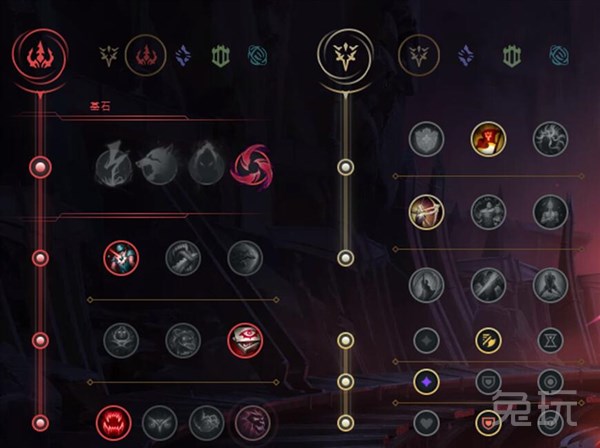 基石符文选择征服者,在无限火力狗熊的连招可以快速叠满征服者,加上不断的W吸血获得强大的回复能力,搭配E技能的互动单挑几乎不会掉血。副系点出贪欲猎手、血之滋味强化狗熊的回复能力。