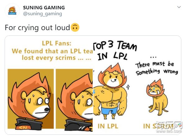 SN官推昨天回应了传出的训练赛失败的消息,SN在LPL是LPL前三的强壮自信的雄狮,到了训练赛则是弱小无助,并配文“一定是哪里出了问题”。