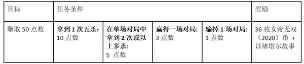 活动期间完成事件系列里程碑任务,共可免费赚取300枚女帝无双(2020)币和1个女帝无双(2020)法球。